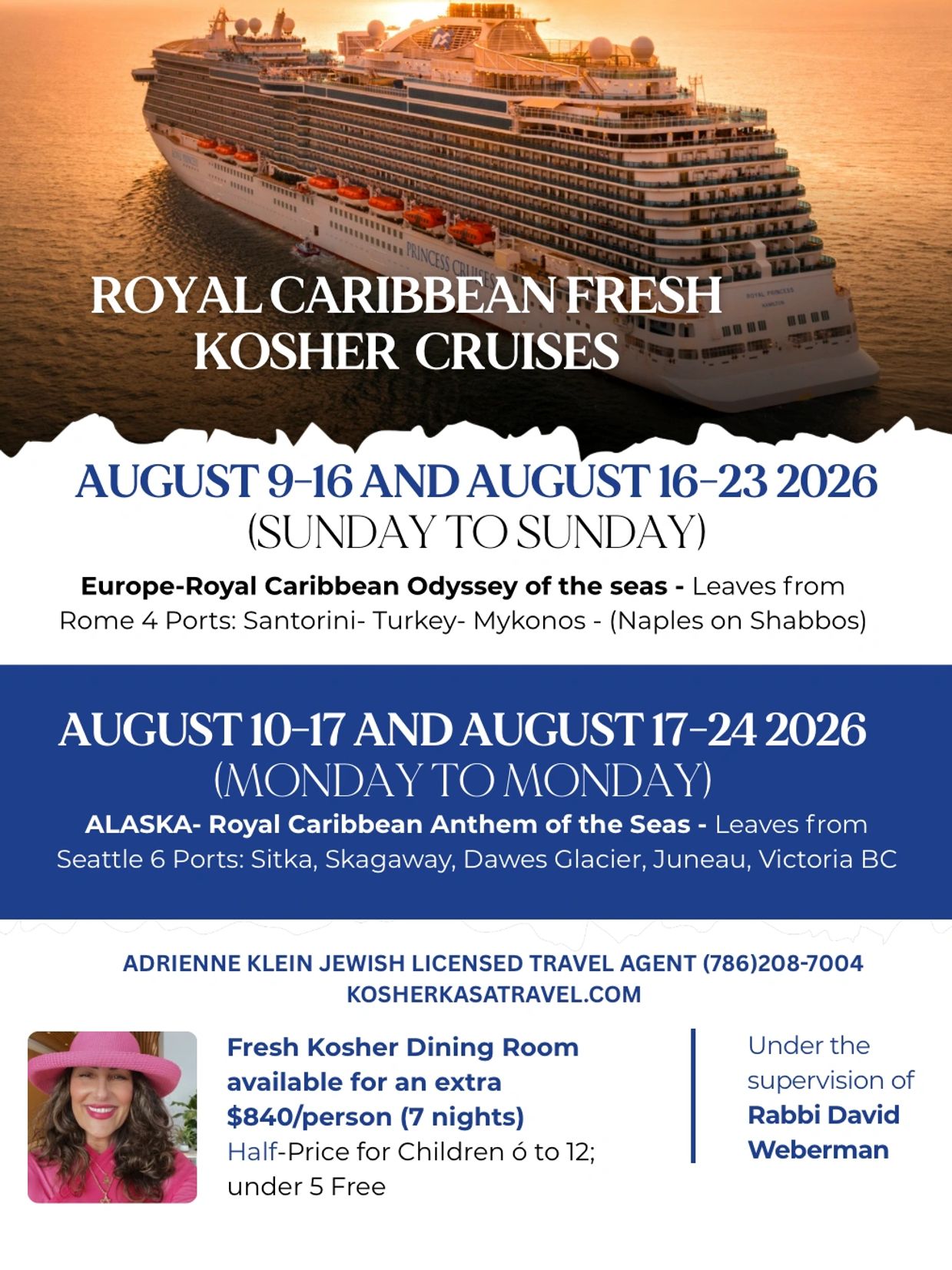 We also plan pre- and post-cruise stays and, where available, arrange Shabbat meals and Kiddush lunch through local community partners.